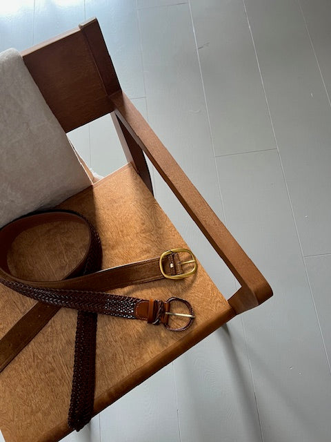 Her hos Rue Birch finder du et lille særligt kurateret udvalg af bælter i fineste kvalitet & med flotte særlige detaljer. Udforsk blandt andet det flettede skind bælter i brune farver fra det danske brand Plissé Copenhagen. Bemærk her de flotte spænder som lukker bæltet, som også har luksuriøse flet detaljer.